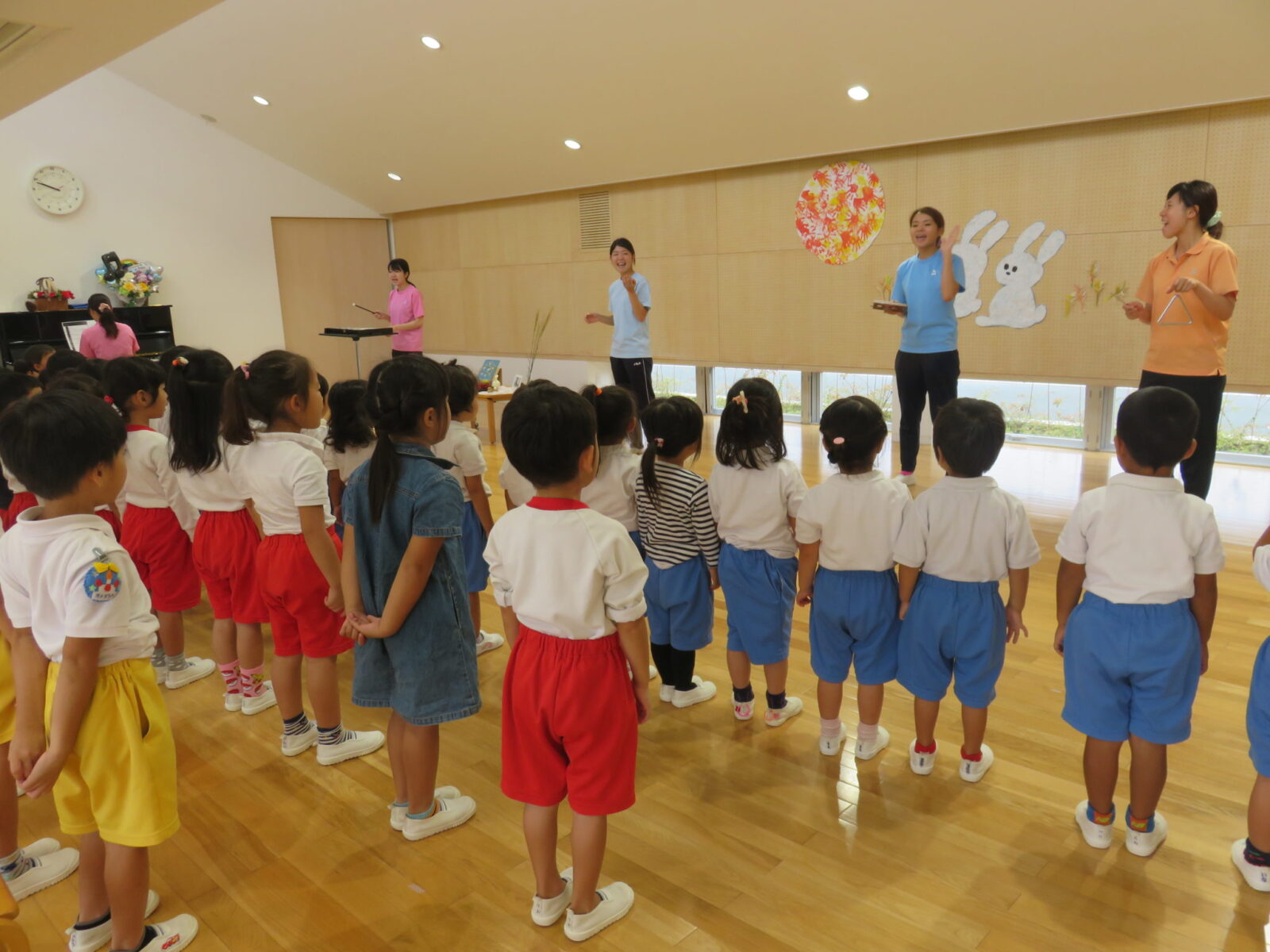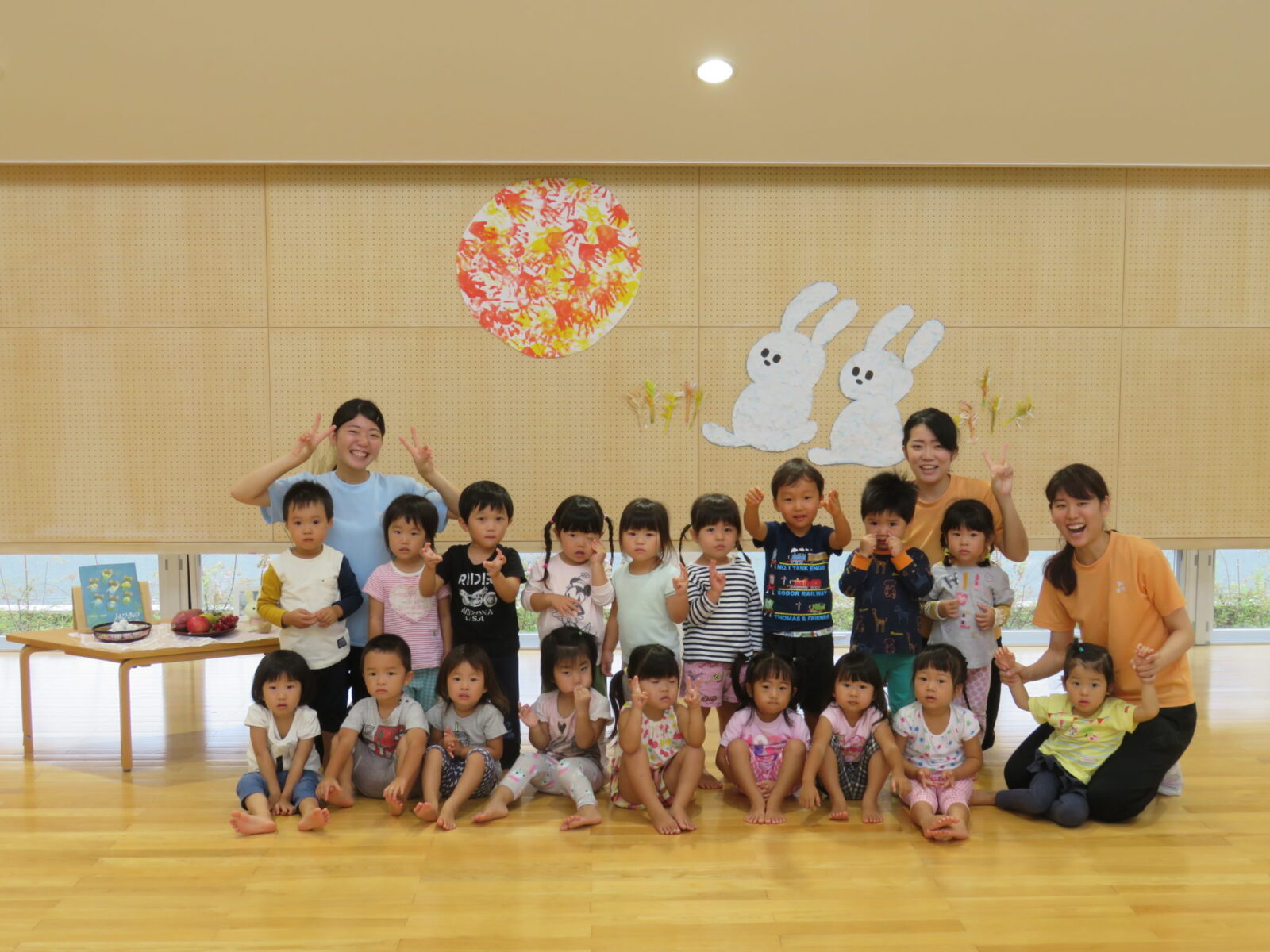 子どもたちの可愛い作品で彩られた園内で“お月見集会”を楽しみました!