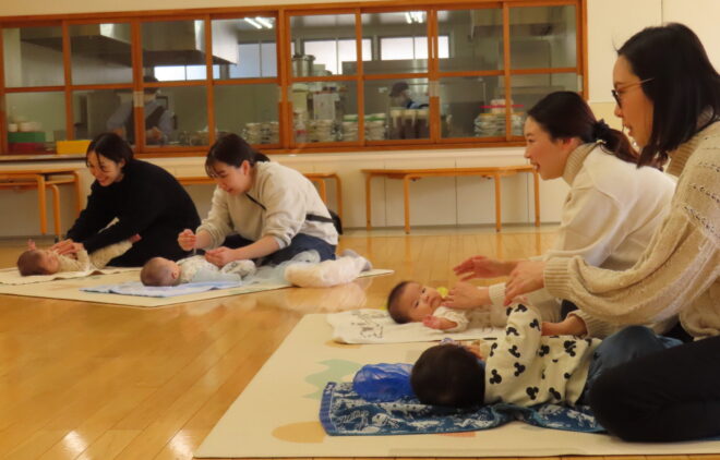 ふれあい遊び『きゅうりができた🥒』ゆっくり赤ちゃんと触れ合うことで親子の絆を深めていけます。