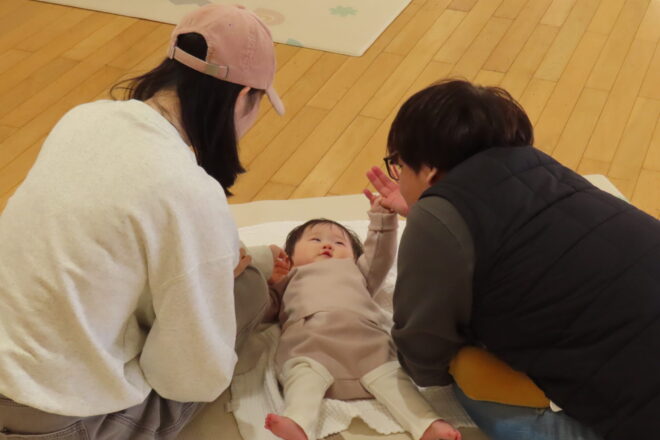 パパ💕ママの笑顔とスキンシップで赤ちゃんはご機嫌でした。