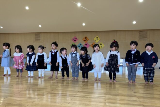 今回の七五三では。成長を喜ぶことを第一に歌や手遊びを行っていきました。日々の遊びの中の内容だったこともあり、無理なく楽しむ姿が見られて安心しました!