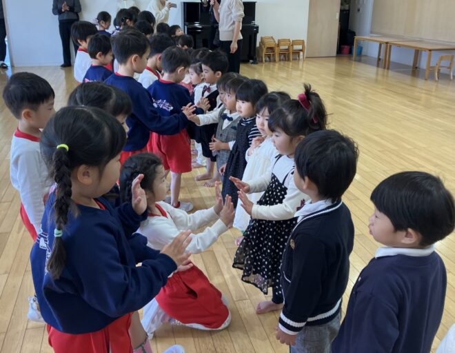 当日はいつもと異なる服装で登園したこともあり、喜びとわくわくしている姿が見られ、子どもたちらしいとても可愛い一面を見ることが出来ました!