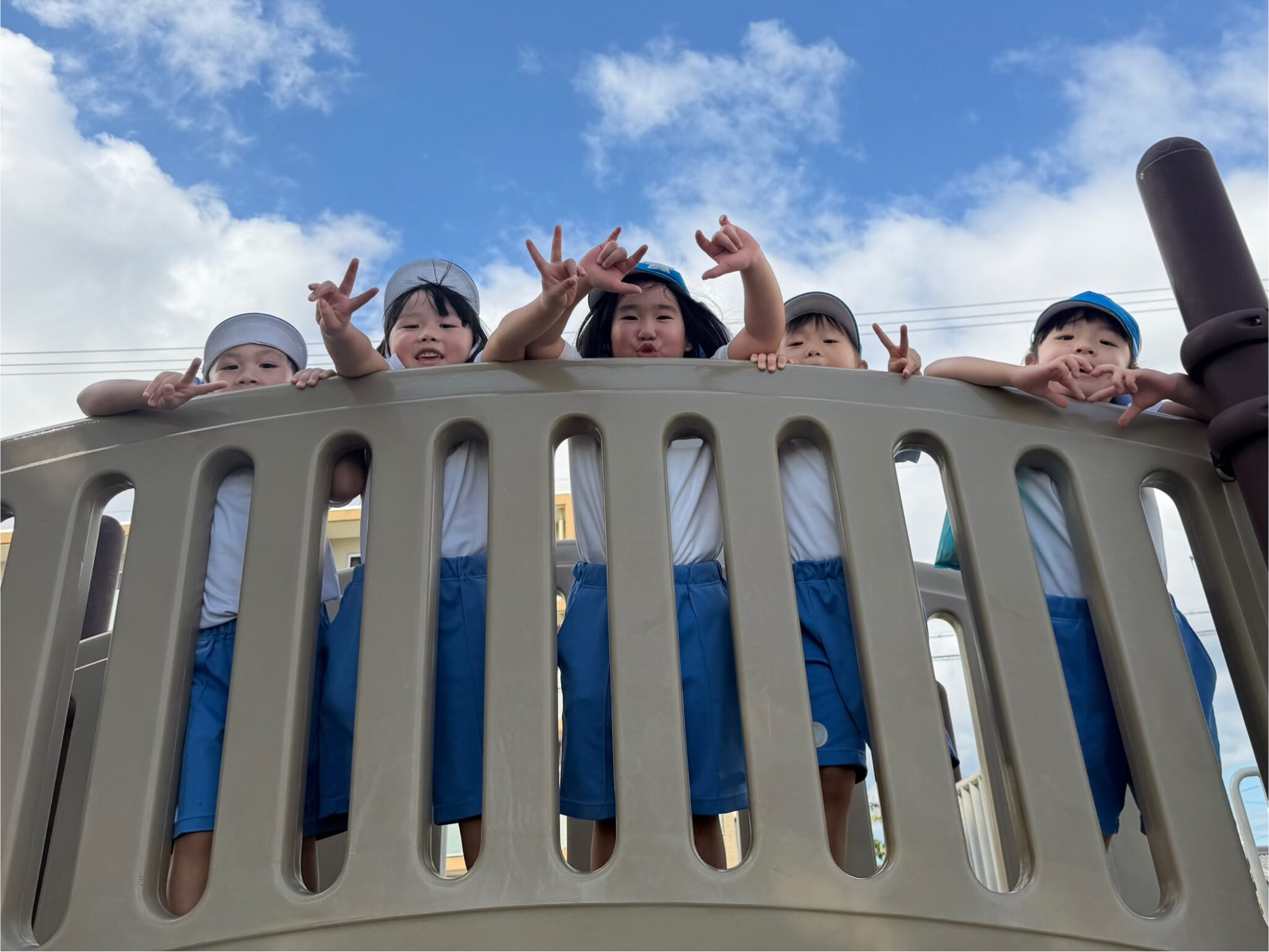 遊具の上からみんなで元気にポーズ♡