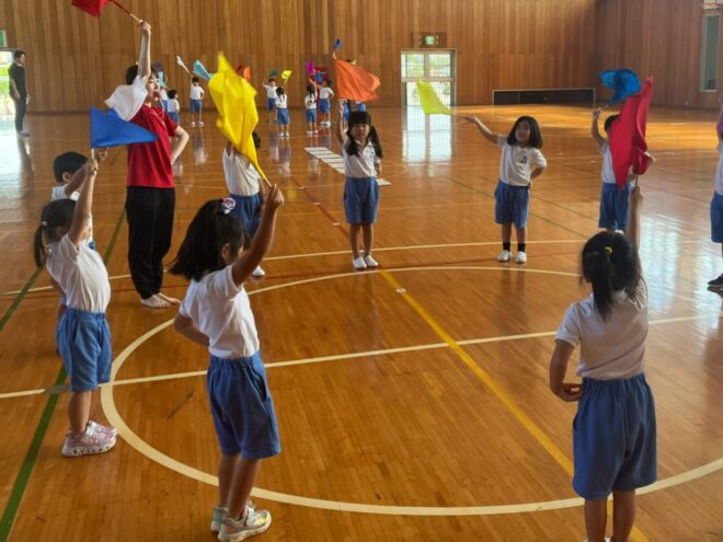 今回初めての旗振りダンスにも挑戦しましたが、タイミングを合わせながら旗を振ったり隊形移動を少しずつ覚えたり…と、取り組みを重ねるごとに息の合った動きになってきたフォルテさん。本番では緊張しながらも友だちと息を合わせ笑顔で踊る姿に大きな成長を感じました。