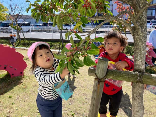 木々が色づき始め、より秋が深まってきましたね!ピアノさんは、秋の自然にいっぱい触れて戸外遊びを思い切り楽しんでいます♪