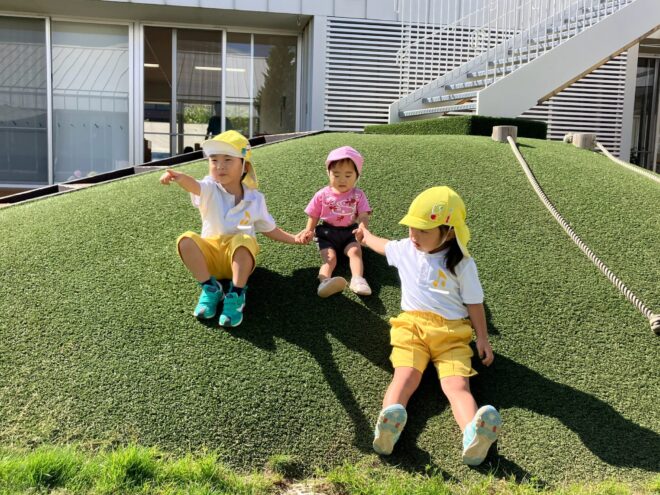 過ごしやすくなり、大好きなお外でもたくさん遊べるようになって大喜び!特にこの時期は色々な生き物に出会えるので「今日は何がいるかな?」「虫かごと網、持っていこう!」とわくわく、そわそわしています(笑)網を構え勢いよく走りだしますが、虫たちの方が一枚上手なようで、すいすーいと空の上。「おーい」と呼び掛けたり「こっちきてよ~」とお願いしたり、何とか捕まえようと頑張っていました😆色々な出会いや体験を、楽しんでいきたいです!