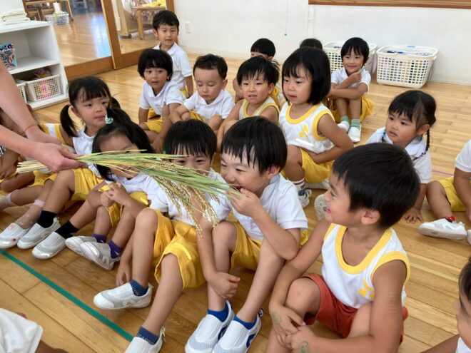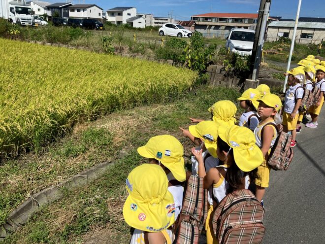 秋は新米の季節ということで、稲や白米を実際に見せてもらった子どもたち。興味・関心がさらに高まっているようです…✨お散歩に出掛け、田んぼも見てきましたよ。「おいしくなぁれ♪」と声を掛ける姿にキュン!♡その日はいつも以上に食の進みが良かったです。