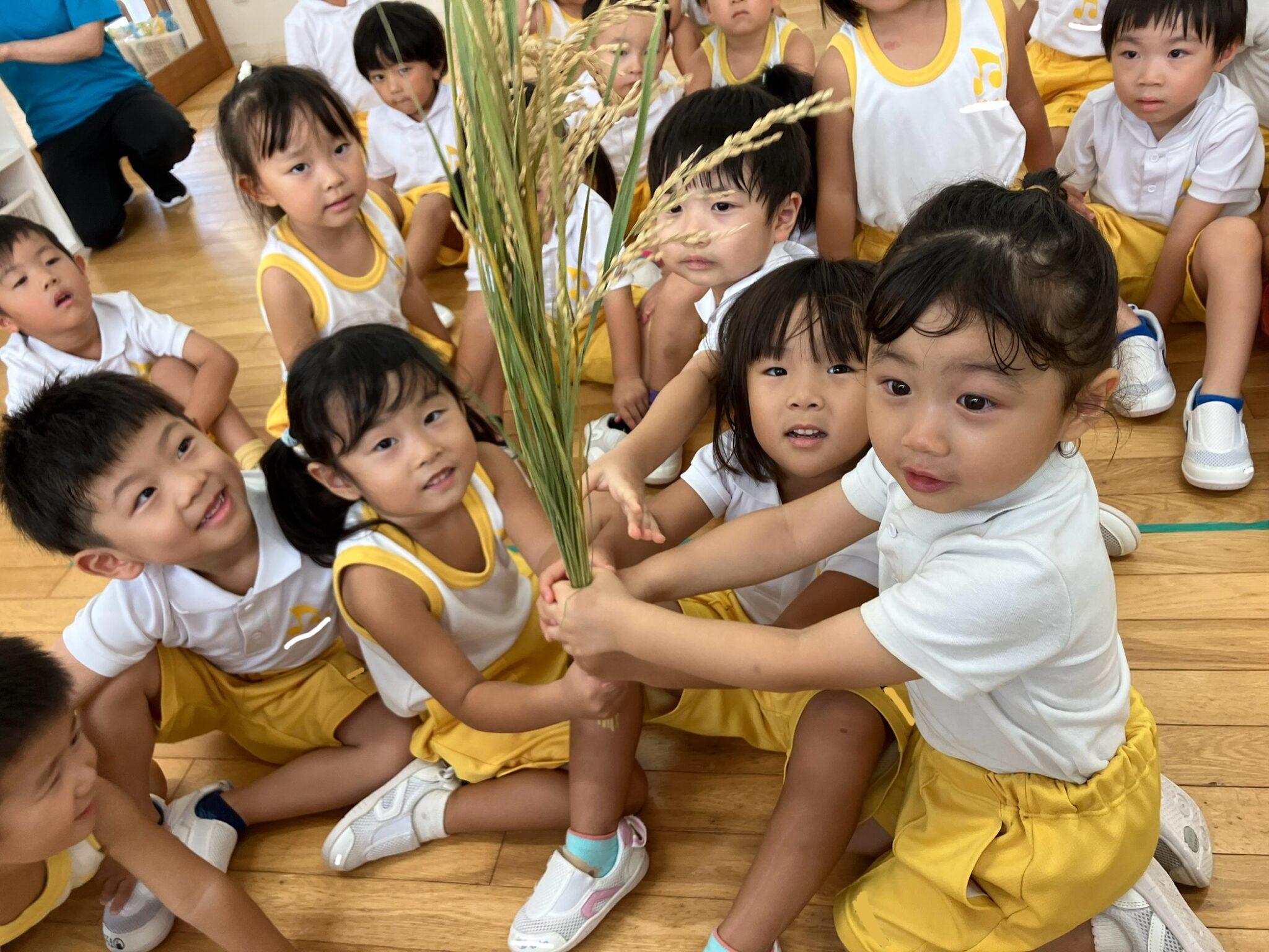 秋は新米の季節ということで、稲や白米を実際に見せてもらった子どもたち。興味・関心がさらに高まっているようです…✨お散歩に出掛け、田んぼも見てきましたよ。「おいしくなぁれ♪」と声を掛ける姿にキュン!♡その日はいつも以上に食の進みが良かったです。