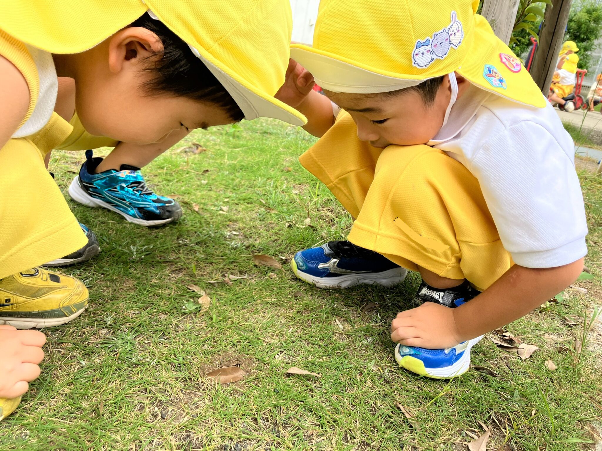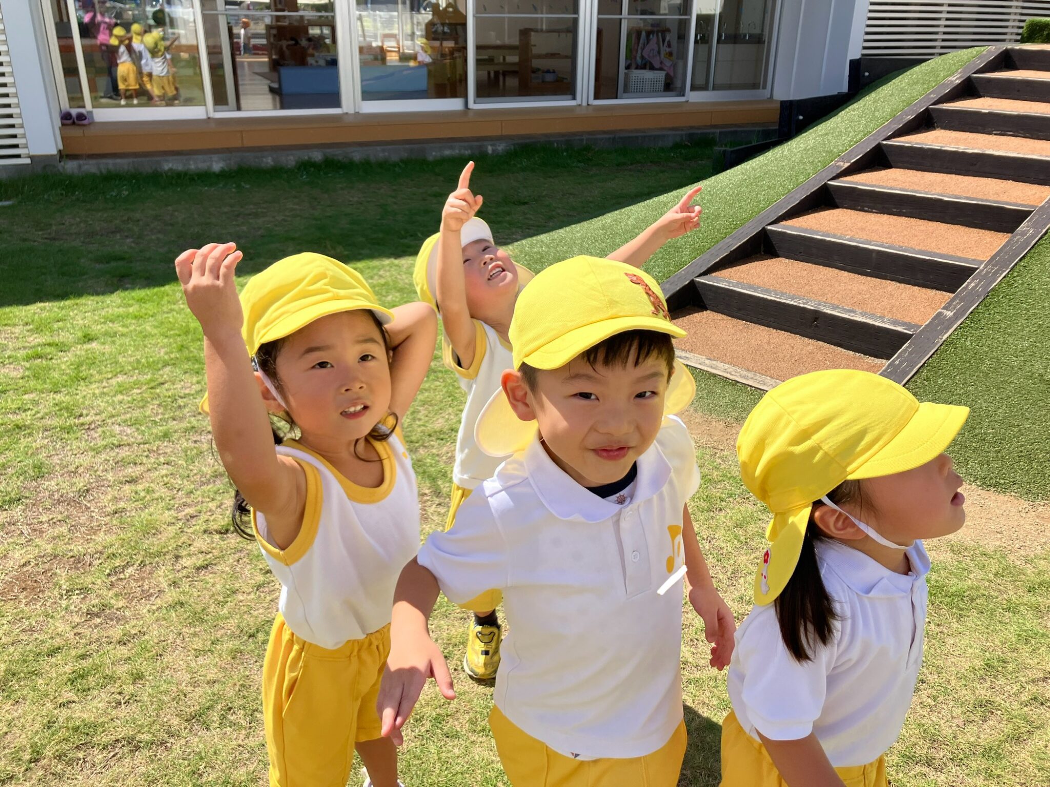 過ごしやすくなり、大好きなお外でもたくさん遊べるようになって大喜び!特にこの時期は色々な生き物に出会えるので「今日は何がいるかな?」「虫かごと網、持っていこう!」とわくわく、そわそわしています(笑)網を構え勢いよく走りだしますが、虫たちの方が一枚上手なようで、すいすーいと空の上。「おーい」と呼び掛けたり「こっちきてよ~」とお願いしたり、何とか捕まえようと頑張っていました😆色々な出会いや体験を、楽しんでいきたいです!