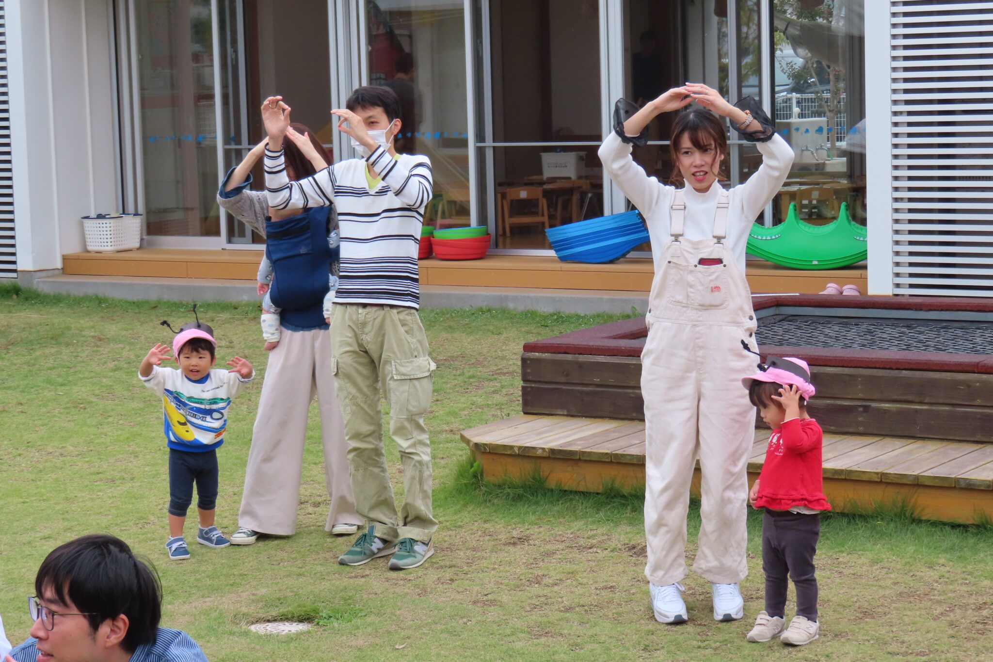 最近のピアノさんはアリに興味津々です。アリを追いかけたり、アリの絵本を繰り返し読んだりする姿から大好きなアリに変身して遊んでいきましたよ♬とっても可愛く変身した姿で大好きな『ドーナッツ!どーなっつ!?』のリズム体操を行いました。保護者の皆様もノリノリで踊ってくださり嬉しかったです。ありがとうございました!