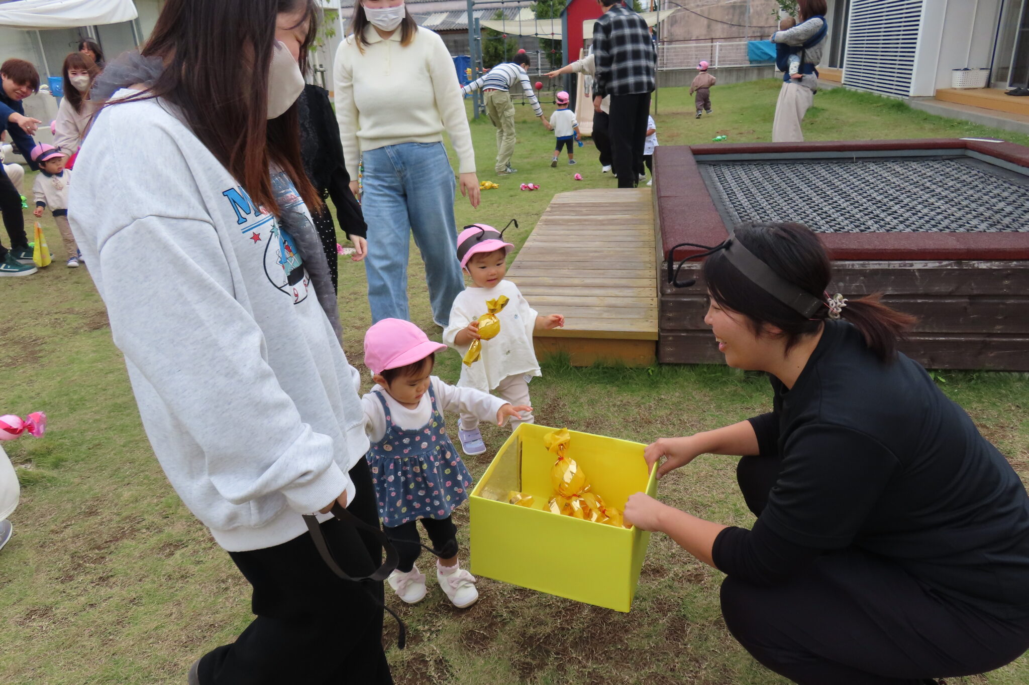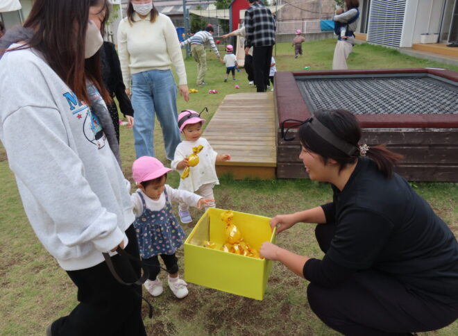 10月24日に『お楽しみワクワクDay』がありました。入園・進級して初めての親子行事に緊張気味のこどもたち。朝は雨がパラパラしていましたが、子どもたちのパワーで止み、みんなで楽しく遊ぶことが出来ました。たくさんのパパ・ママに参加していただき、素敵な時間を過ごせてよかったです🌟