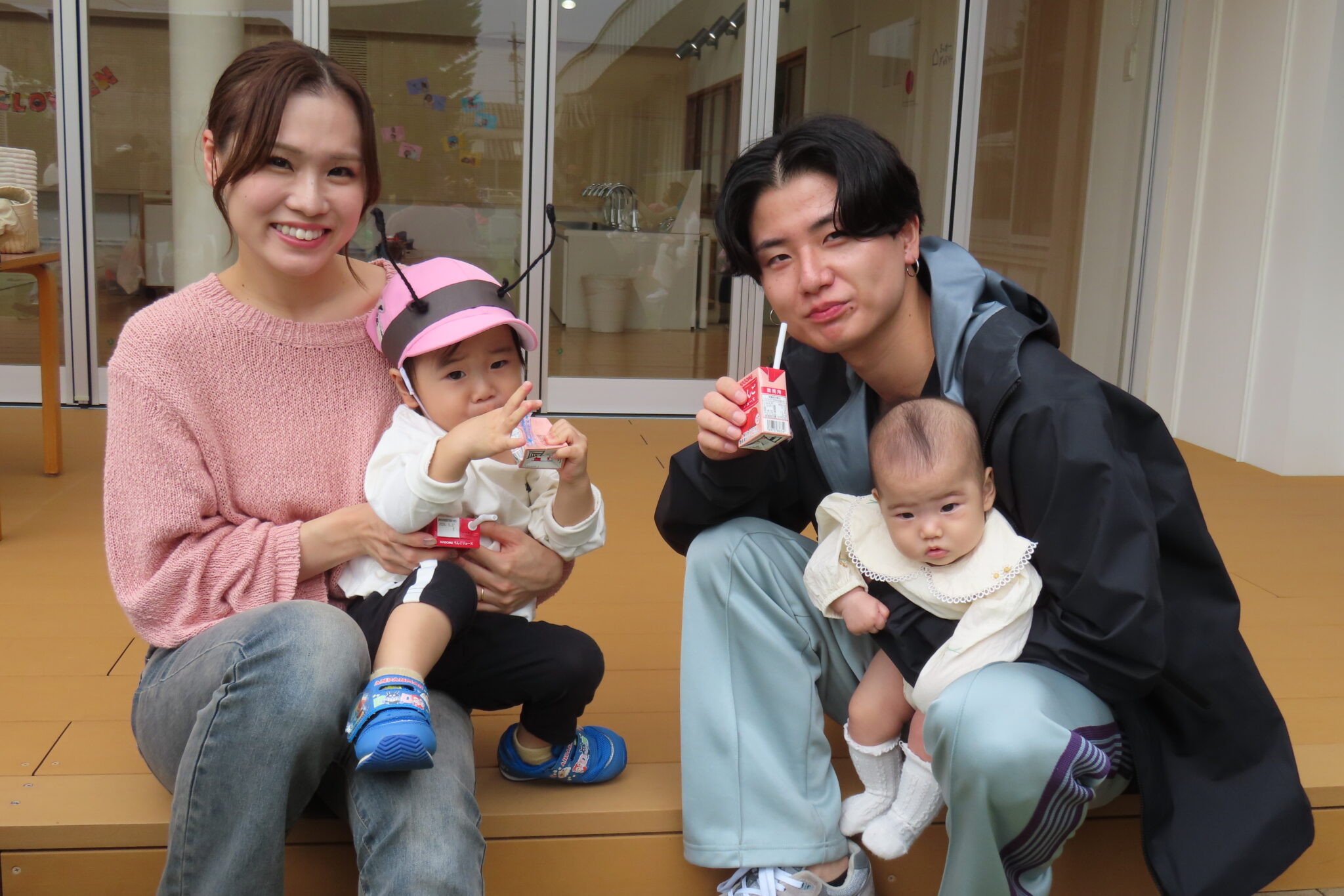 ゲームの後は休憩タイム!ジュースを飲んで「おいしい」と満面の笑顔が見られました♬
