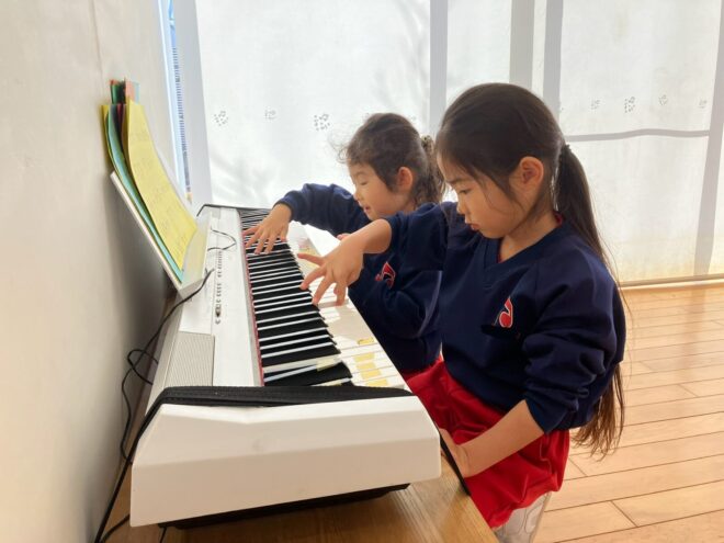 ピアノに興味を示す子も…!楽譜を見ながらいろんな曲に挑戦中🎹