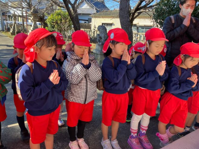 年始は園の近くにある“春日神社”へ初詣に行きました⛩お参りの仕方を先生から教えてもらい、みんなでお参りすることができました!