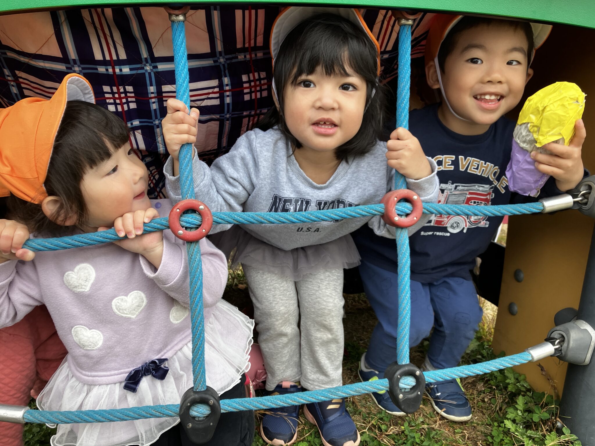 朝晩の冷え込みに、冬の足音が少しずつ近づいてきたことを感じます。園庭の木々も赤や黄色に色づき、子どもたちは落ち葉やどんぐりを手に取り、秋の宝物探しを楽しんでいます。
