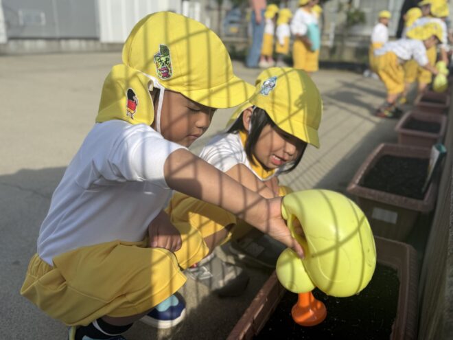 みんなの思いが届いたようで、ちっちゃな芽が出てきて「やったー!」「可愛い赤ちゃんだね」と喜んでいました。引き続き大切にお世話をしていき、命の大切さにも気づけたらいいなと思います😊