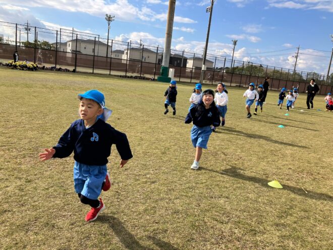 冷たい風が吹き冬の訪れを感じる頃になりましたが、お外が大好きなフォルテさんは寒さを物ともせず元気いっぱい遊ぶ姿が見られます。中でも12月はマラソン大会に向け日々取り組んできたフォルテさん。「1位を目指す」「最後まで走る」とそれぞれの目標を掲げ、一生懸命走る姿が見られました。取り組んでいく中で、少しずつ自信がつき自分なりのペースで最後まで走ろうとする姿が見られるようになりました。マラソン大会当日はそれまでの頑張りがしっかりと表れみんなで最後まで走り切る事ができました。