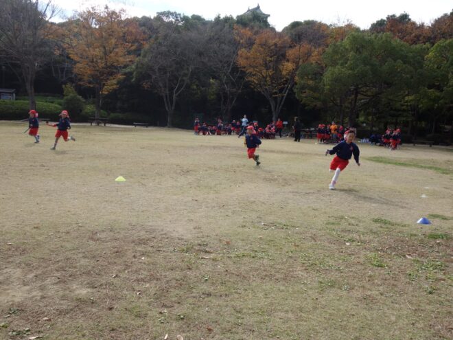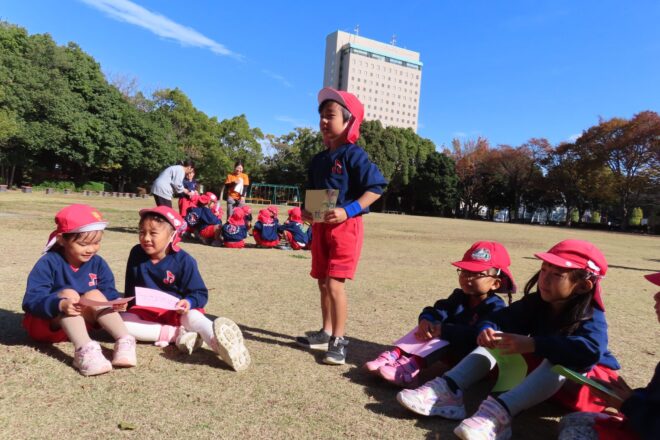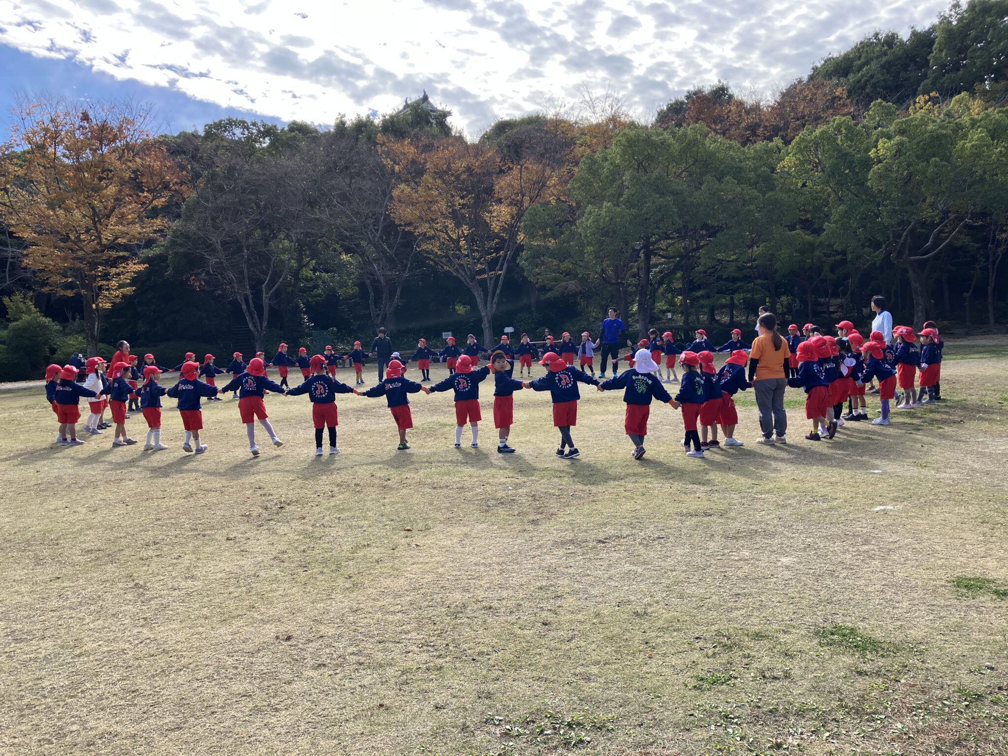 浜松城見学を終え、その後は音の森こども園とはぁもにぃこども園の先生やお友だちと広場に集合しました♬会うことが久しぶりで、ちょっぴり緊張していた子どもたちでしたが、お友だちの顔を見ると嬉しそうに手を振り合う姿がとても可愛らしかったです😊