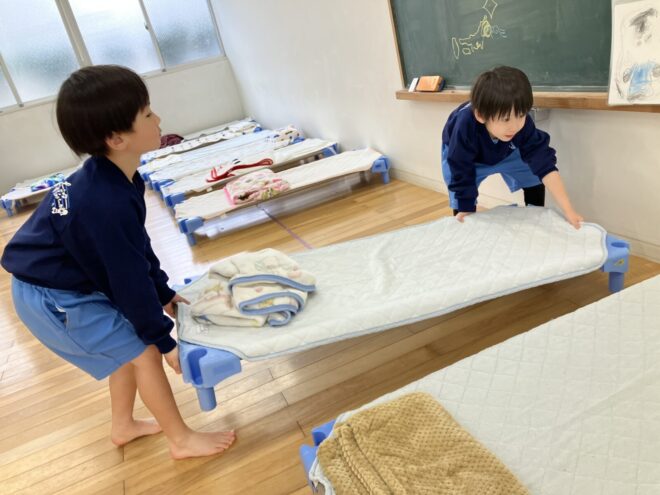 フォルテさんでの生活も、残すところあとわずか。進級を心待ちにし、「マーチさんになるの楽しみ!」とはりきって当番活動やお手伝いをする子や、「フォルテさん、あと少しで終わっちゃうの?」と寂しさを感じながらも、お友だちや先生と過ごす時間を大切に楽しむ子など、さまざまな姿が見られています。